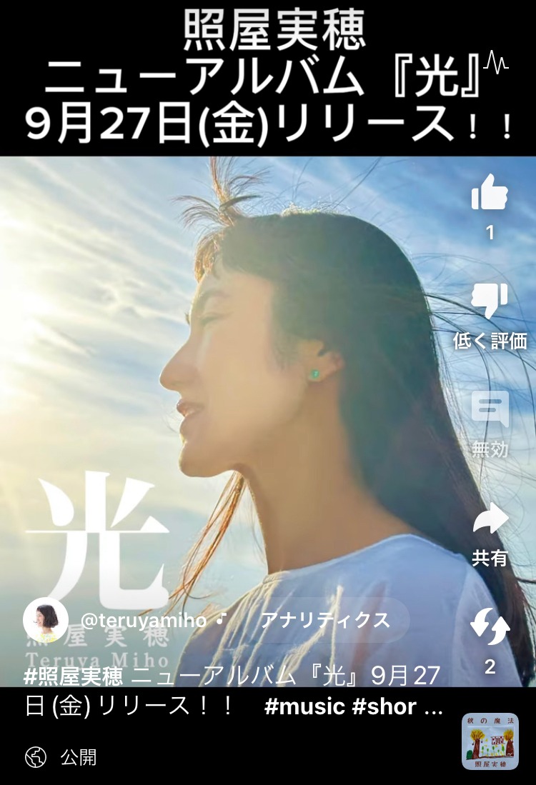 Youtubeショート公開【照屋実穂ニューアルバム『光』9月27日(金)リリース!!】